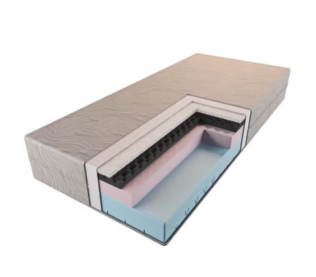 Матрас Топаз с мемори – прекрасная альтернатива мягкому пружинному матрасу. Поверх основного блока плотного поролона послойно уложены высококомфортная ортопена, пена с массажным резом и ортопена мемориформ. Ячеистая резка обеспечивает легкий массажный эффект, которые смягчает вязко-упругий наполнитель с «эффектом памяти», расслабляющий до состояния невесомости. Обволакивает формы нестегающийся плотный, приятный на ощупь, тянущийся трикотажный чехол.